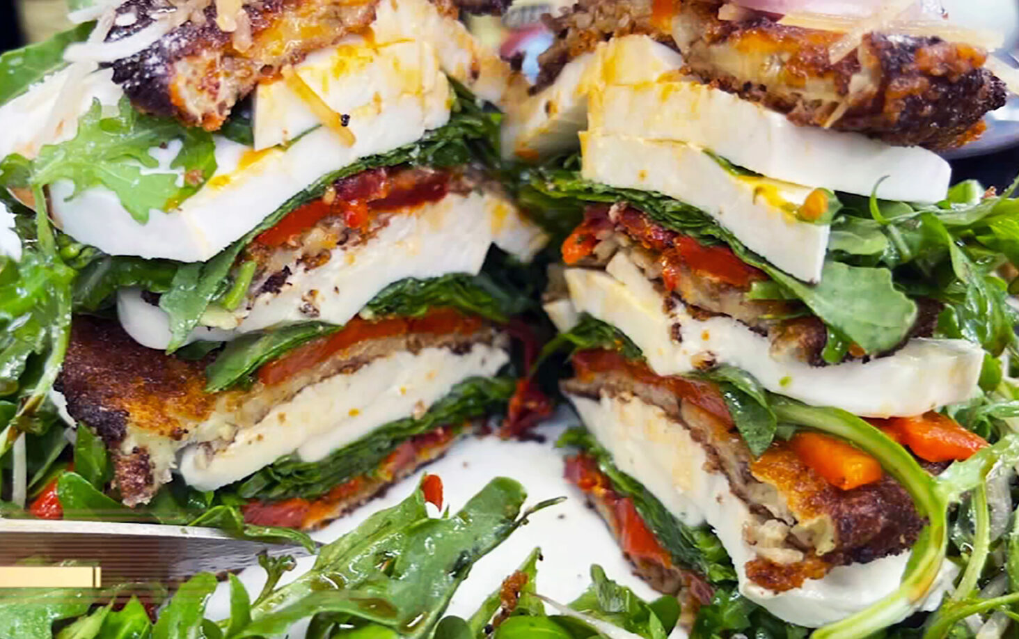 Fried Eggplant Tower Salad