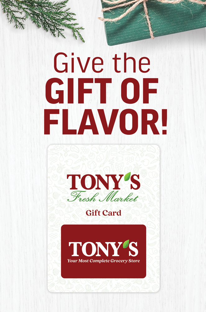 Tony’s Fresh Market offers gift cards all year-round at every grocery location. See our store locator to find a Tony’s Fresh Market nearest you.